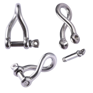 These 2 heavy-duty 4mm twisted shackles are made from durable 316 stainless steel, perfect for marine and outdoor use. Their screw pin design ensures a secure hold and resists corrosion and wear, making them reliable in tough conditions. Ideal for boat rigging, camping, or any load-bearing task, these shackles provide strong, long-lasting performance to keep your gear safe and secure.