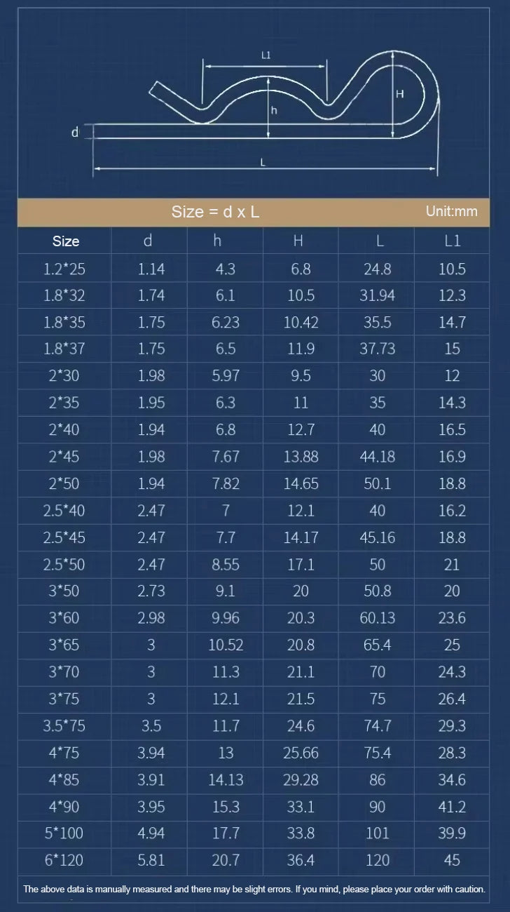 Diameter(d): M1.2 M1.5 M1.8 M2 M2.5 M3 M3.5 M4 M5 M6