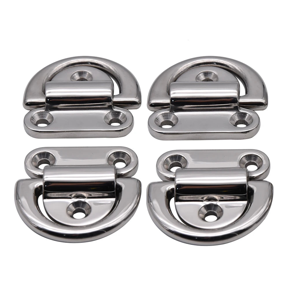This set of 4 folding D-rings is made from durable 316 stainless steel with a high-polish finish, offering strong, corrosion-resistant tie-down points.