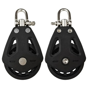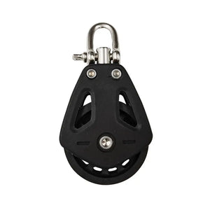 Designed to handle working loads up to 460kg, it supports lines up to 10mm in diameter. Compact and reliable, this black swivel shackle pulley measures 68x52x23mm, making it an essential accessory for your sailboat.Â