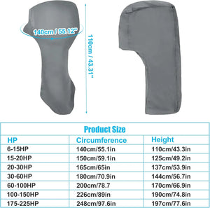 Outboard Cover - Universal 6-225HP - 210D Grey Waterproof Fabric