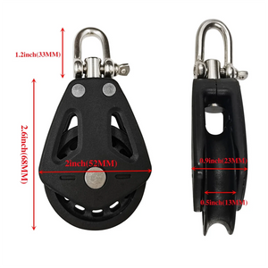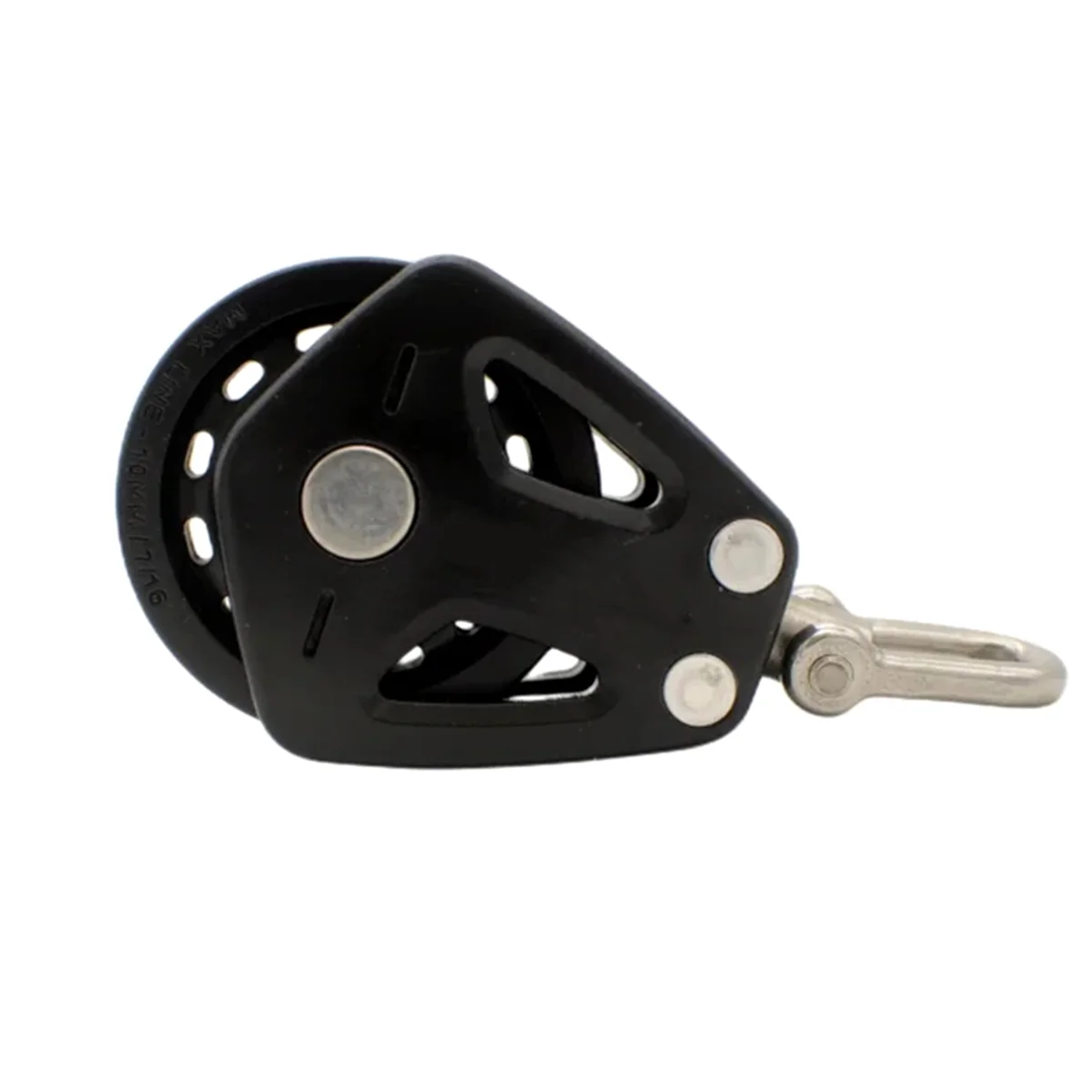 This universal-head single pulley block is made from rust-proof 304 stainless steel and nylon, ensuring strength and durability.