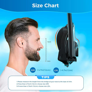 This full face mask with a mini 0.5L scuba tank lets you snorkel on the surface and breathe underwater for about 6 minutes. It offers a clear 180° view with flat lenses and a snug silicone fit to keep water and fog out.