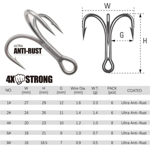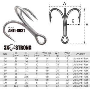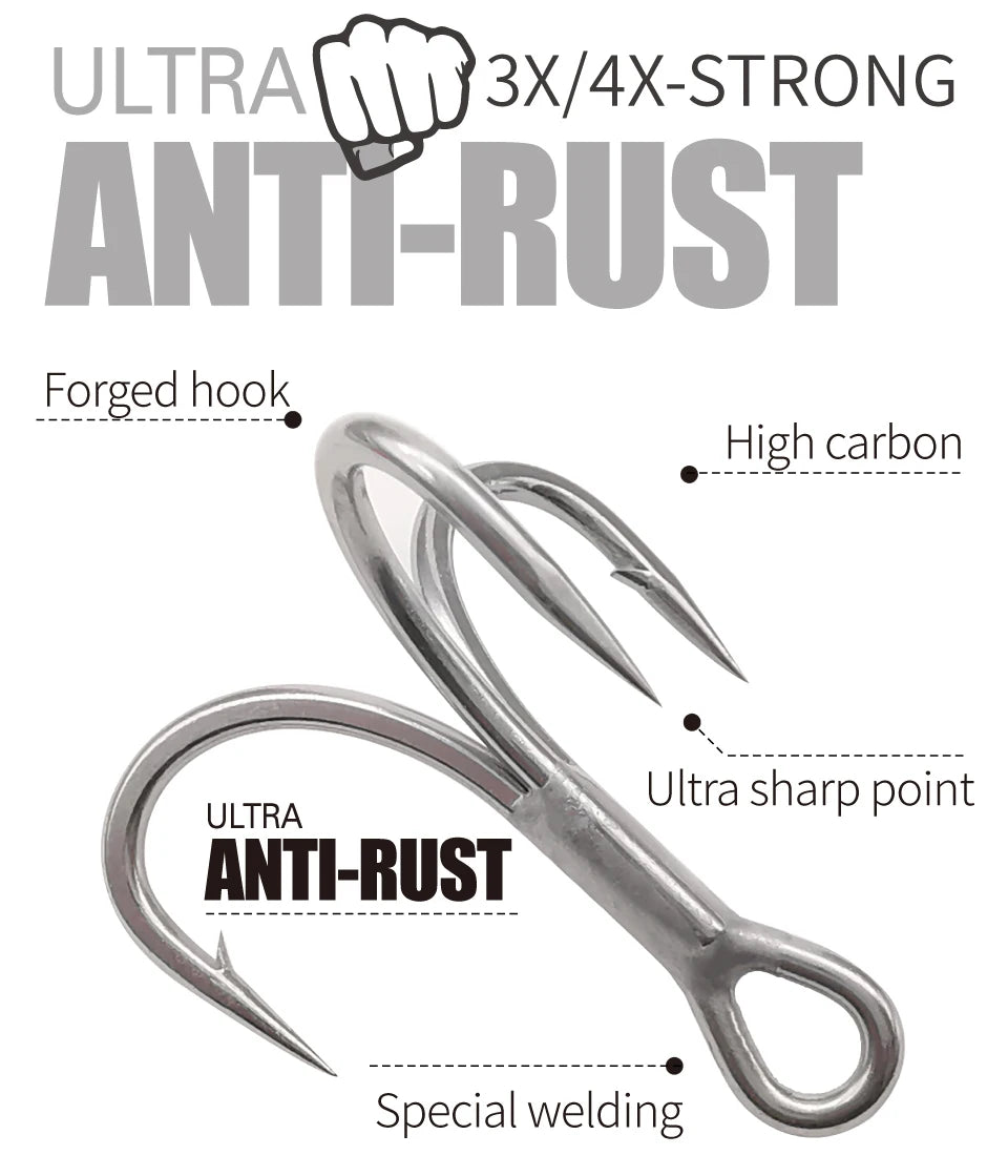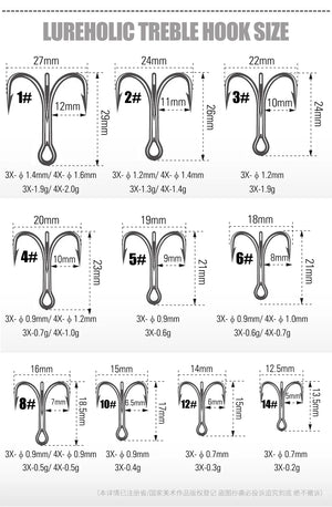 LUREHOLIC 3X 4X Super Strong Triple Hooks - Anti-rust coating