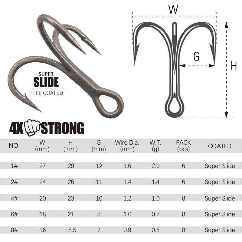 3X Triple Hook Anti-Rust, 4X Triple Hook Anti-Rust, 3X Triple Hook Super Slide, 4X Triple Hook Super Slide |