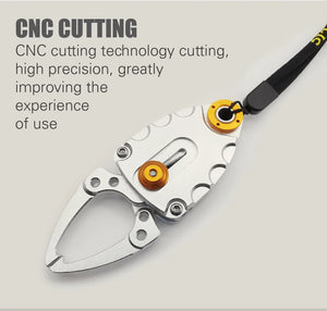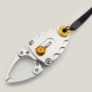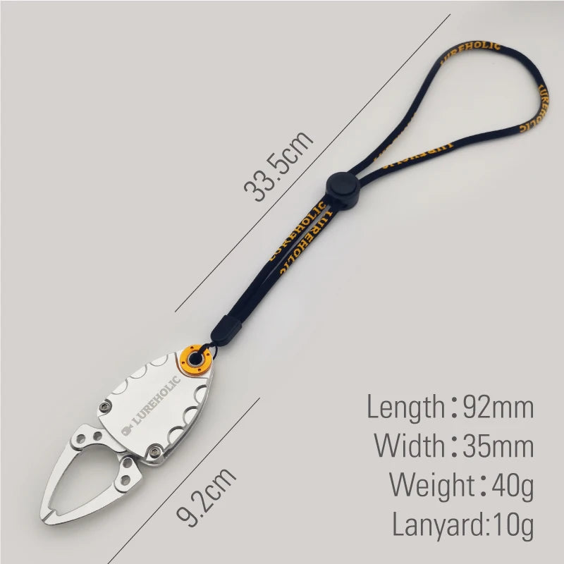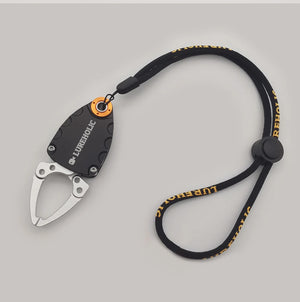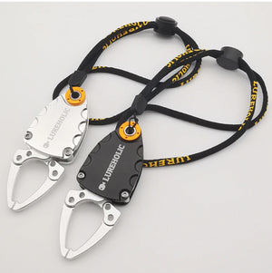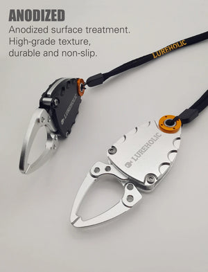 Handy hook remover made from ultra-light aluminum with attached lanyard and storage bag.