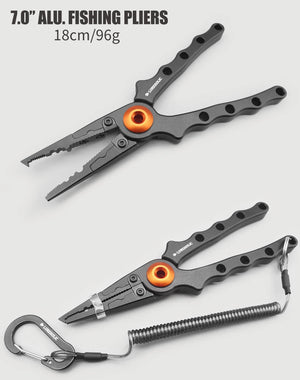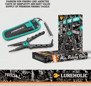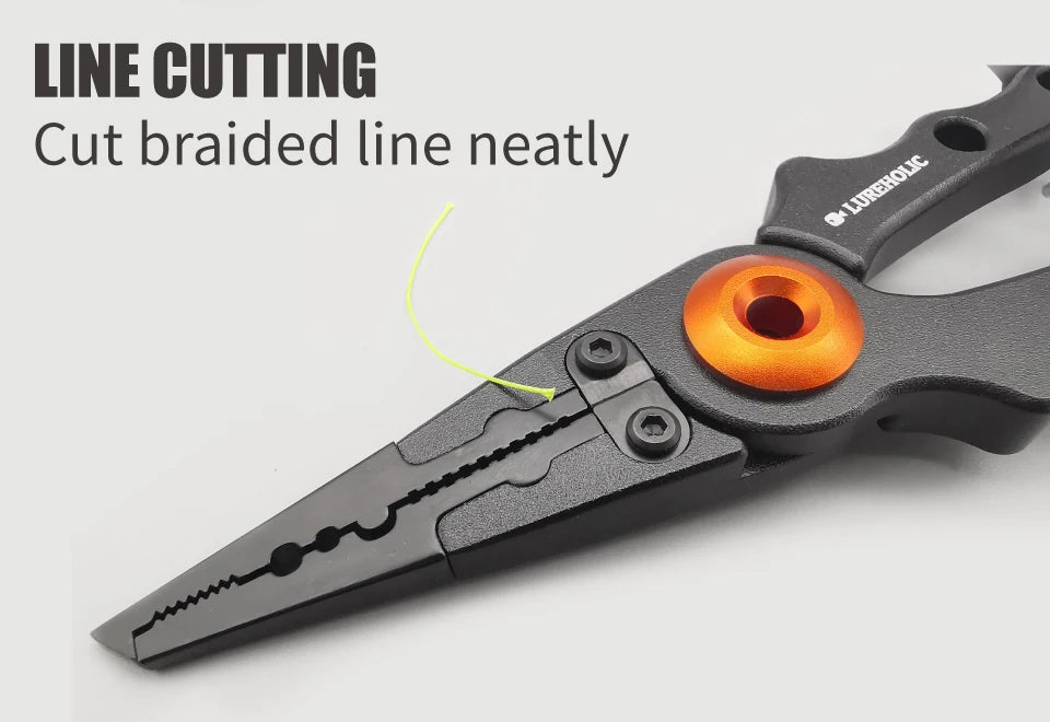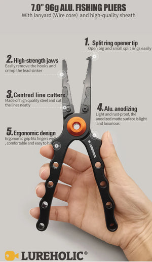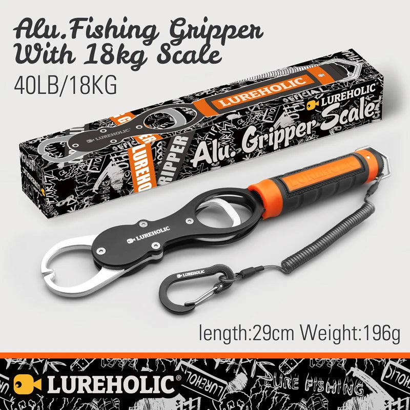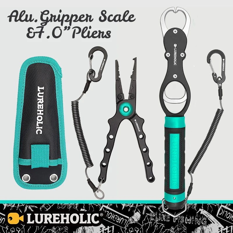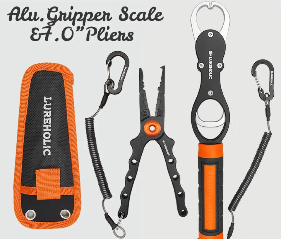 These Lureholic fishing pliers and fishing grip with scales are a handy addition to any tackle box. Durable, light-weight aluminum alloy.