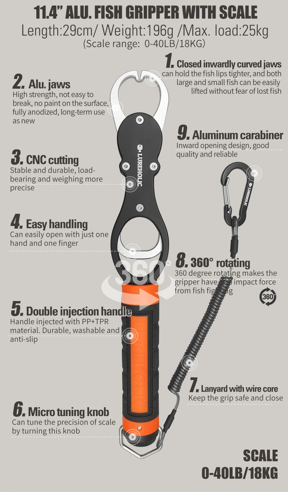 Lureholic Fishing Pliers & Fish Gripper w/ Scales