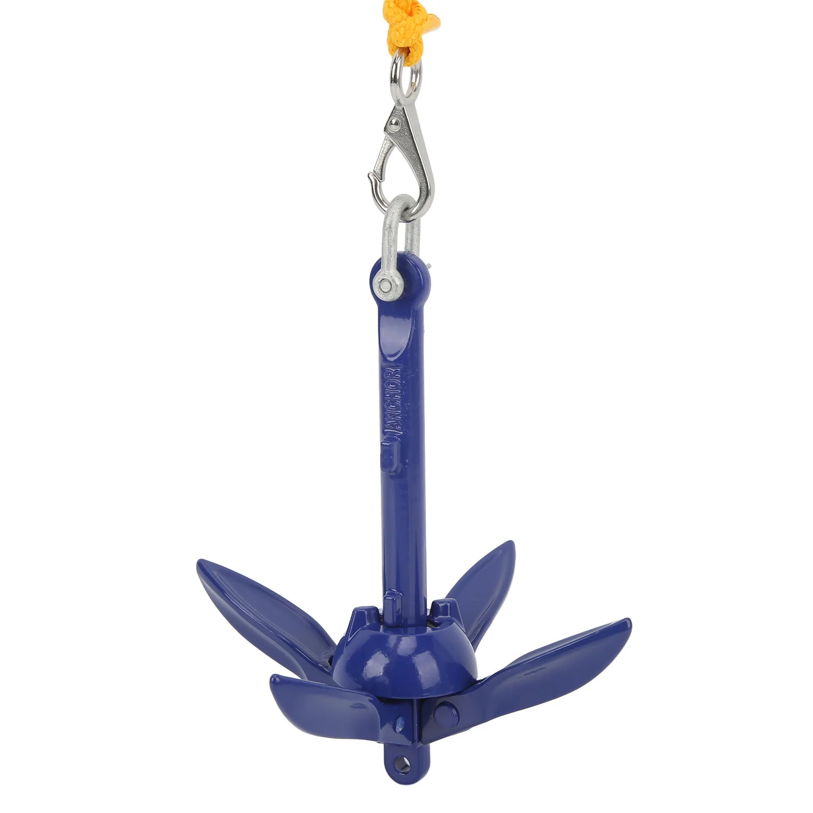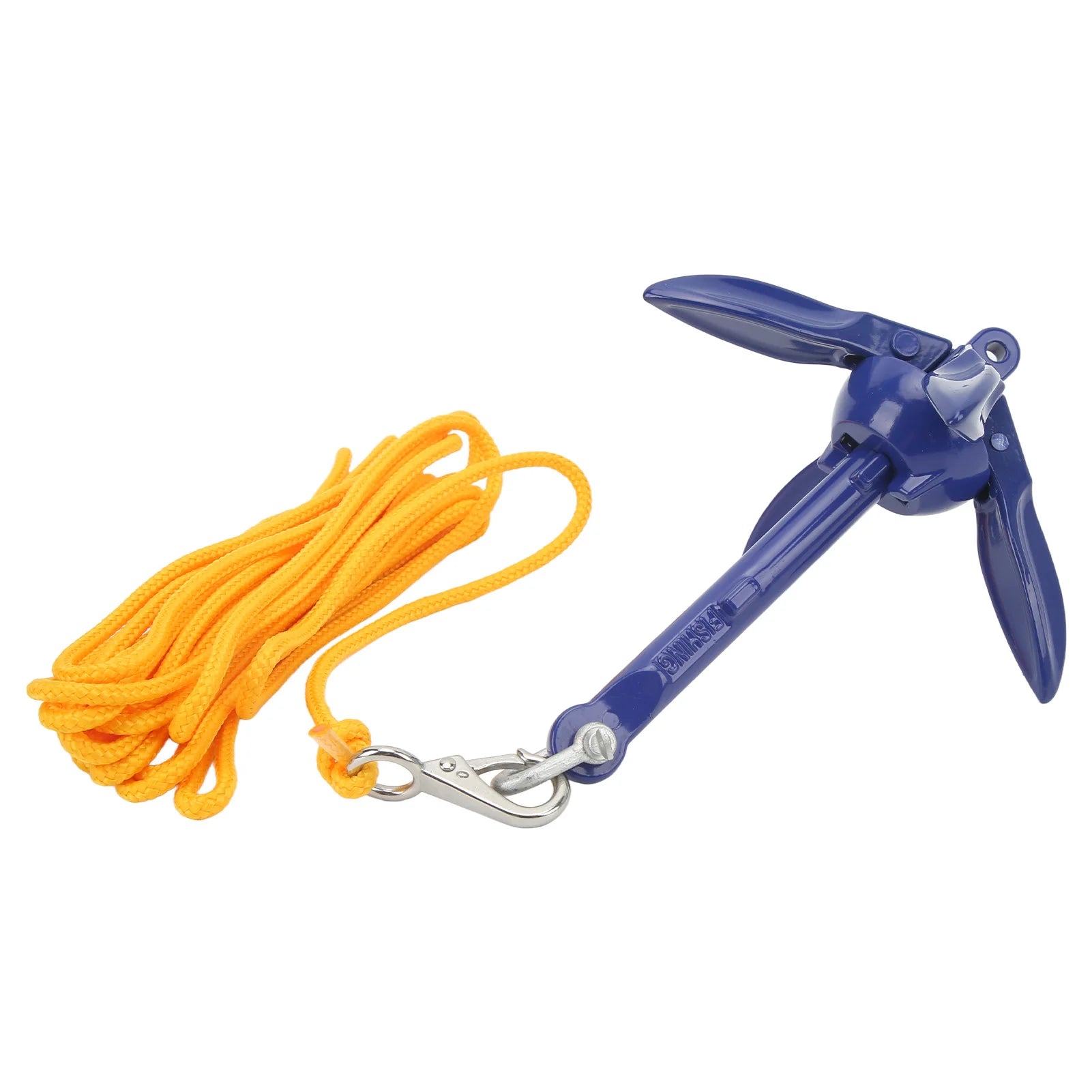 This blue aluminium marine anchor is foldable and easy to carry, perfect for boats and kayaks. It’s strong and durable, keeping your vessel steady on coral, sand, or rocky bottoms. Comes with a bright yellow rope and a handy storage bag—your fun fishing trips just got easier!
