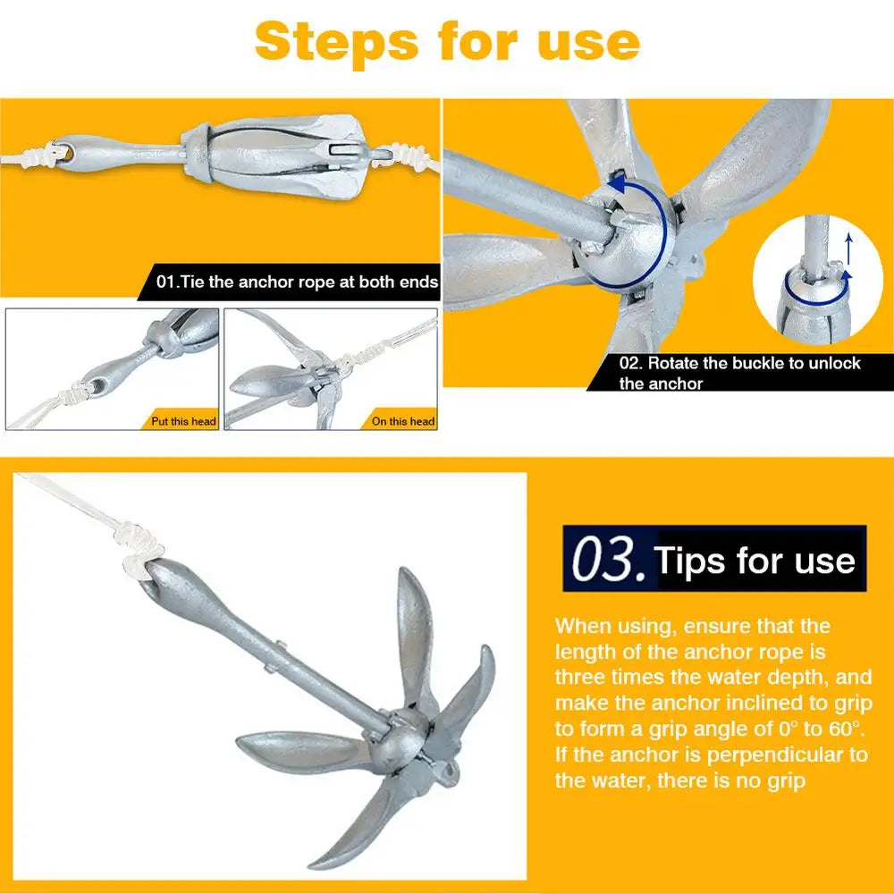 The anchor is foldable, and its compact size is easy to store and easy to carry.