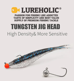 Catch more with these playful tungsten jig heads! Available in weights from 0.6g to 5g, each features a sharp Mustad micro hook perfect for finesse fishing with soft lures.